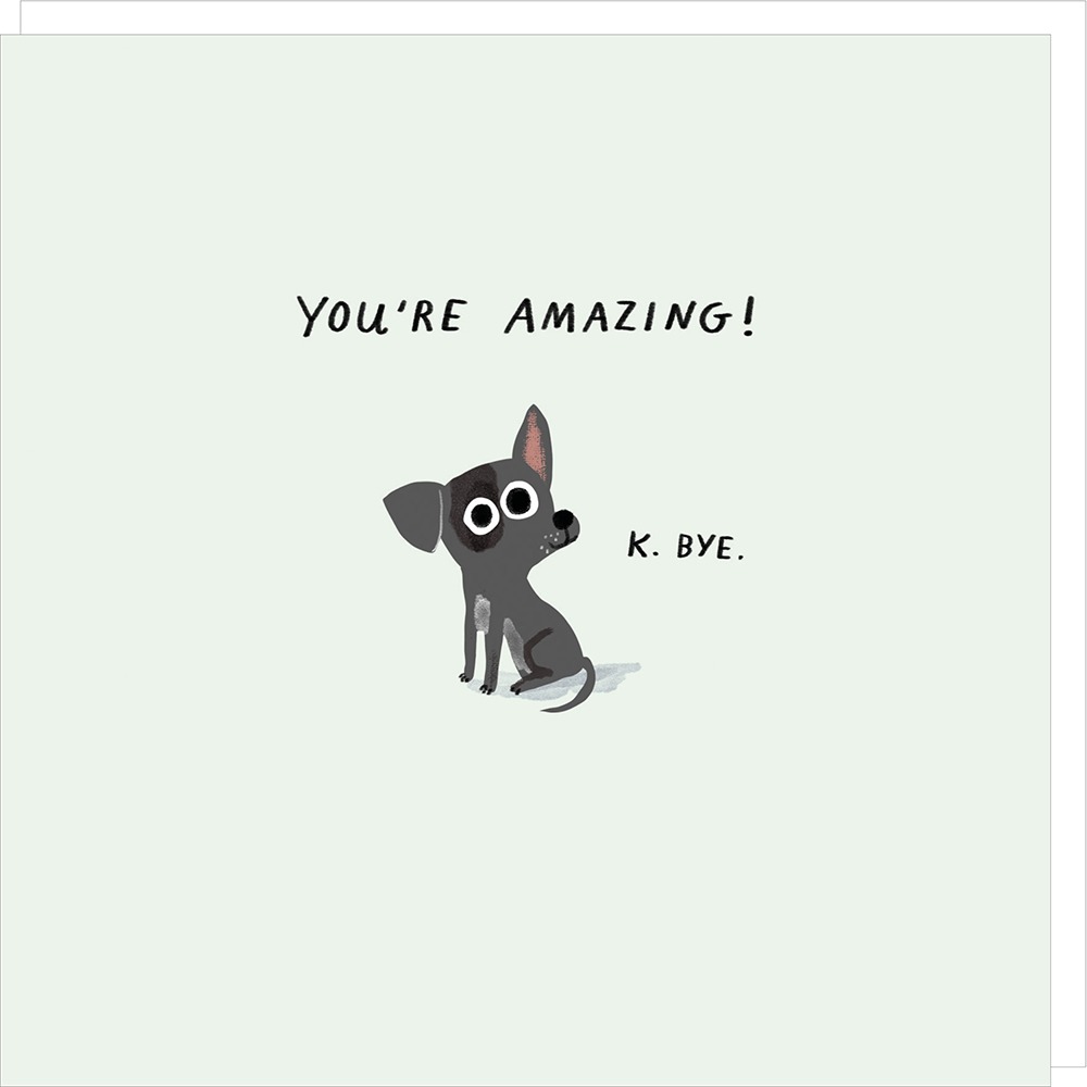 A birthday card with the cutest of little dog images! ‘You’re amazing! K.Bye’.